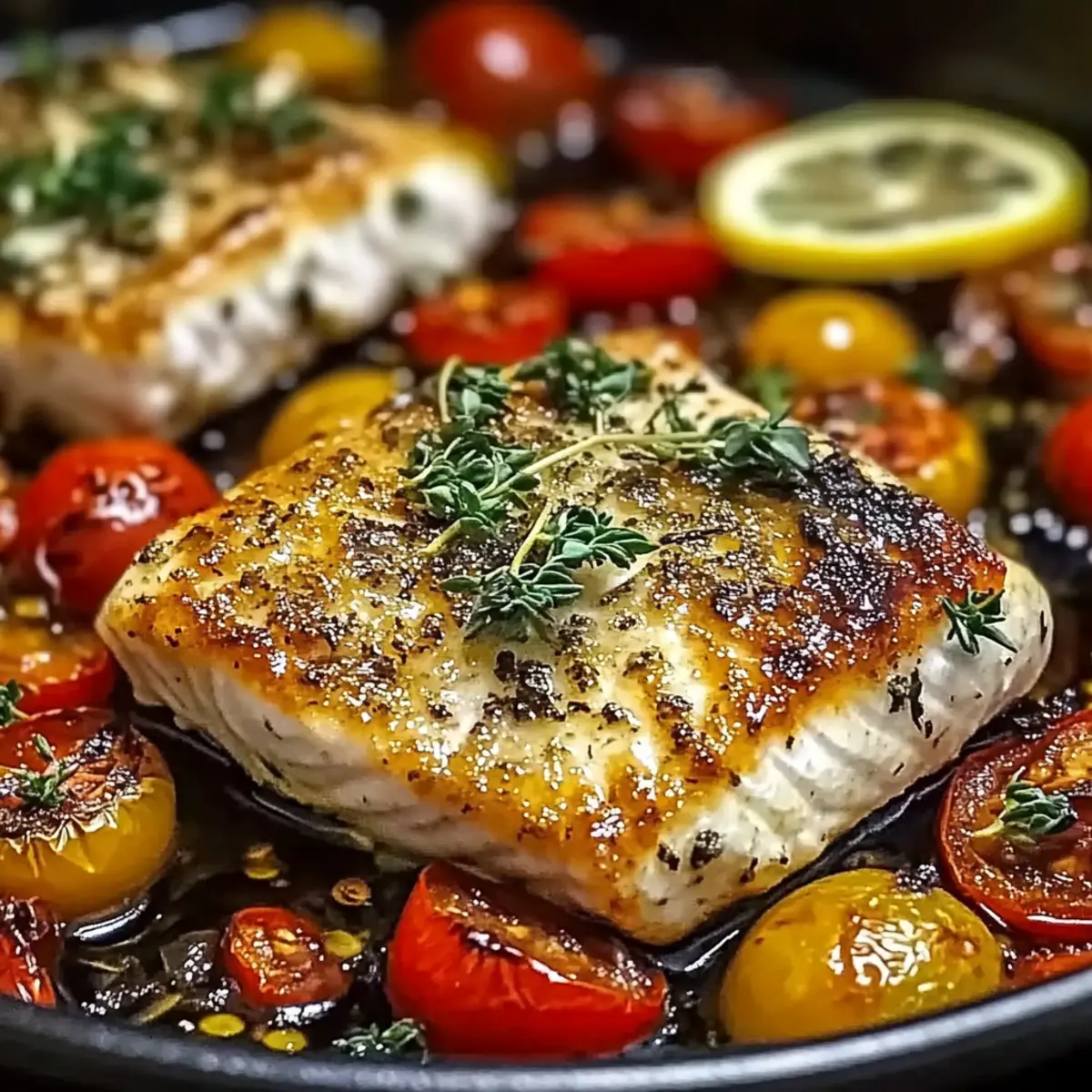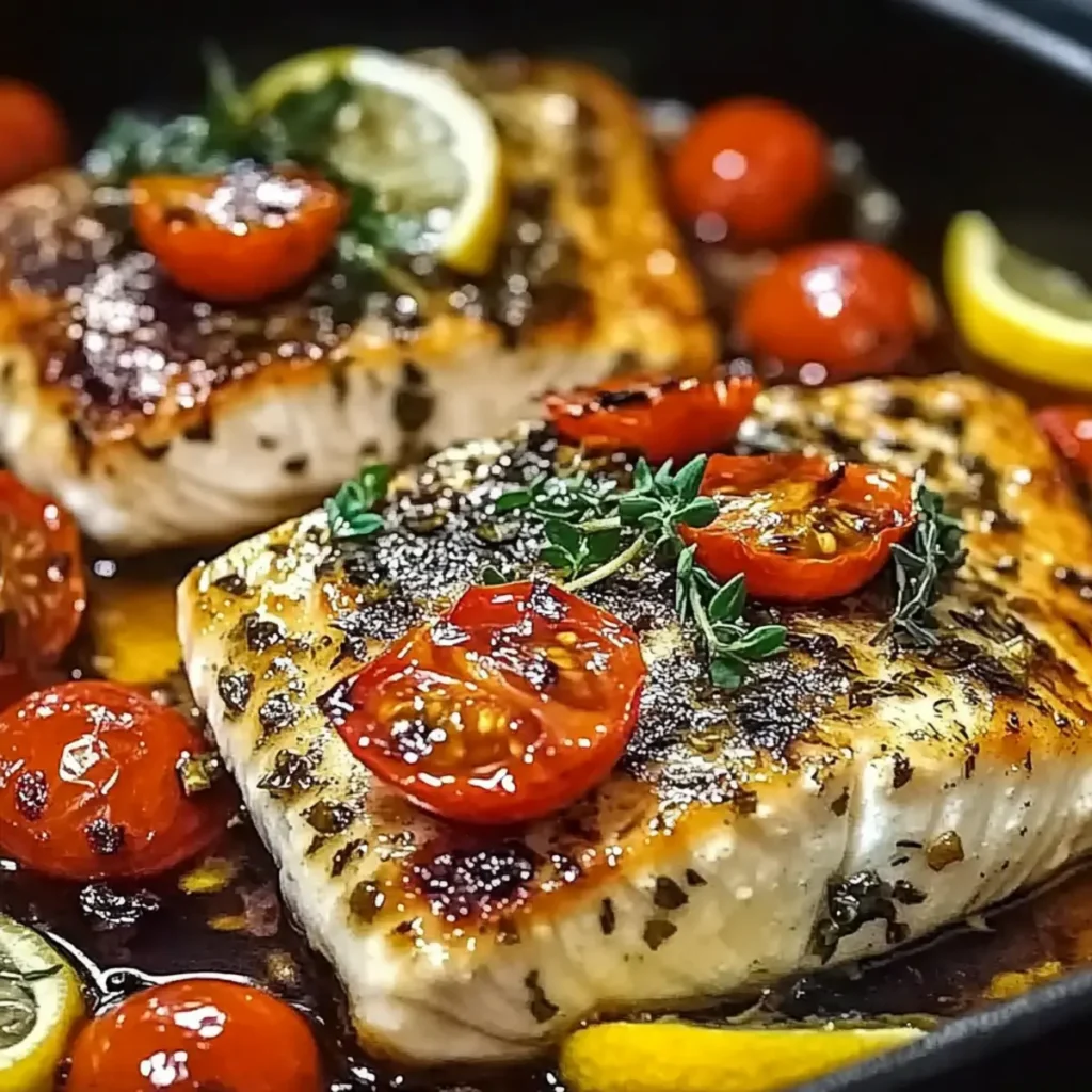 - Serve right away. Spoon any pan juices over the fish before plating. Those juices are concentrated lemon, tomato, and olive oil — they’re worth capturing.