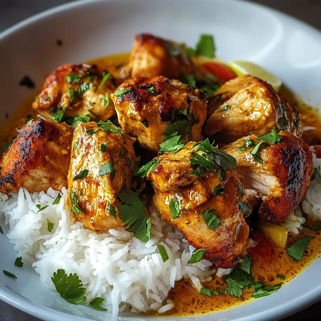 Tender chicken cubes nestle in a silky coconut tomato sauce that’s been brightened with fresh cilantro and a squeeze of lime. Everything happens in one pan, the flavors develop quickly, and in under an hour you’ve got a complete meal that’ll have everyone reaching for seconds.