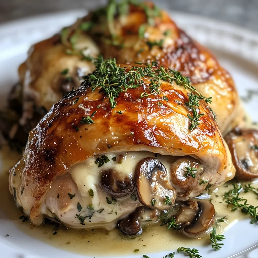 Cheesy Garlic Butter Mushroom Stuffed Chicken