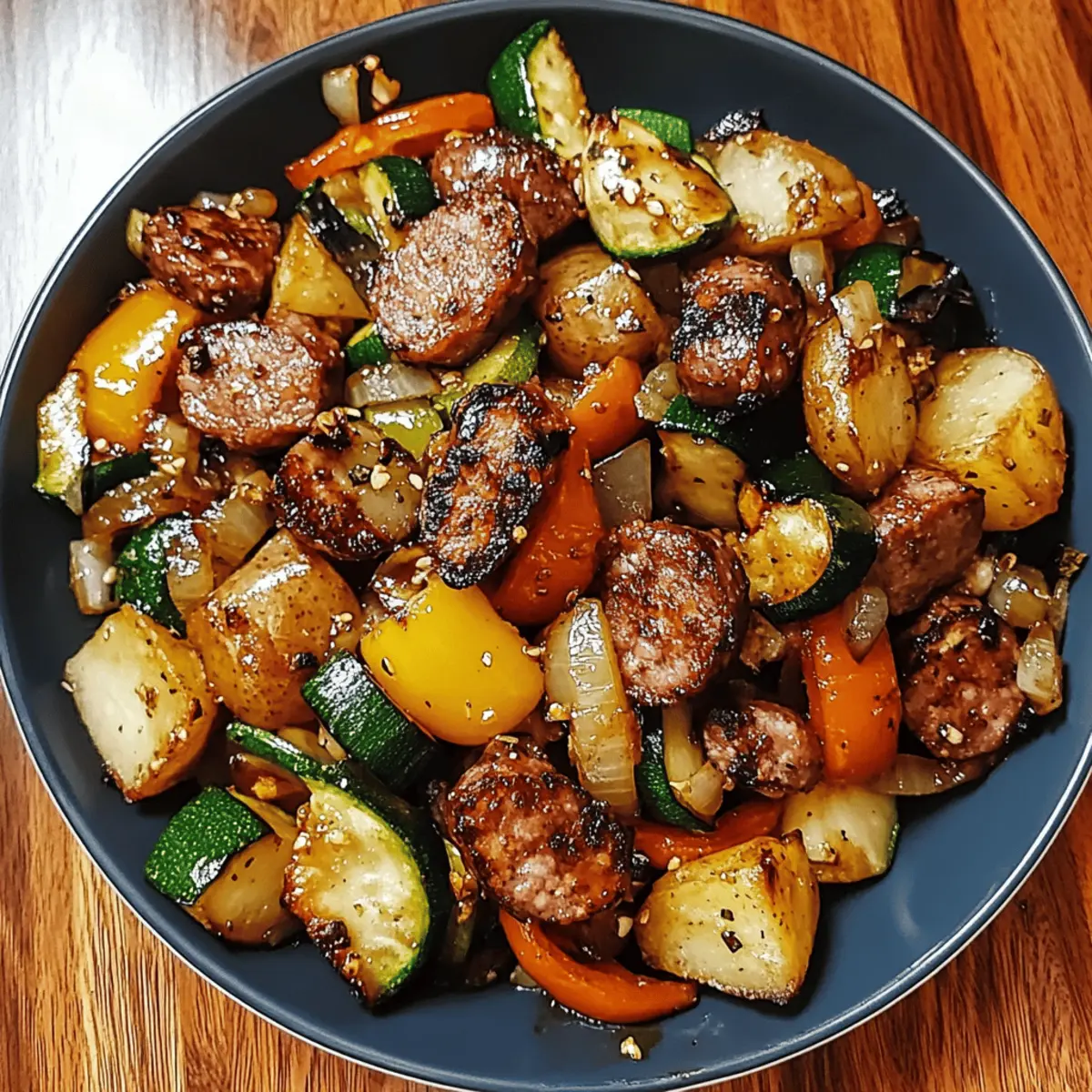 Swap the protein: Kielbasa or smoked sausage works well here for a faster, more budget-friendly version. Slice into rounds and sear them until they pick up color before adding the veggies.