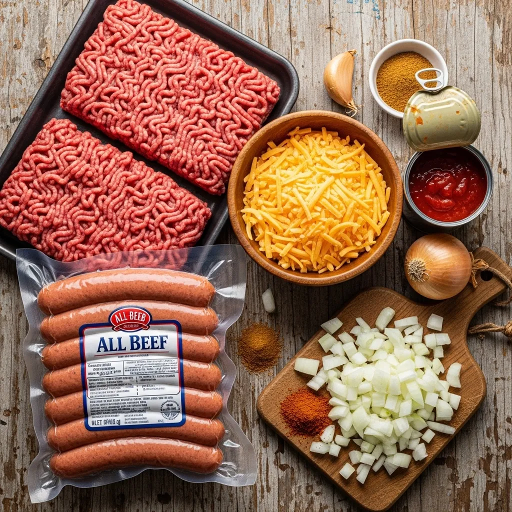 Ingredients for Keto Chili Dog Casserole