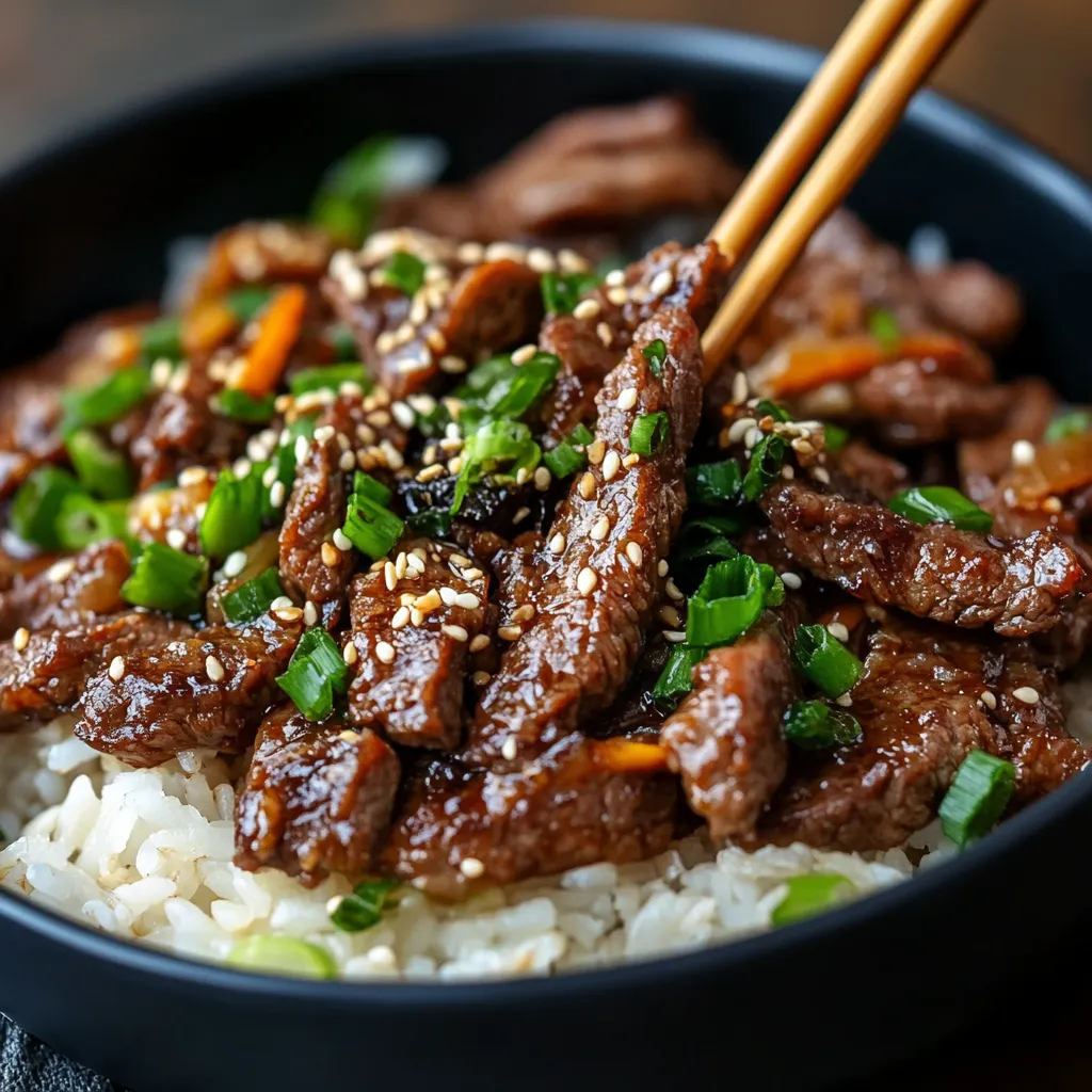 - Once all the beef is cooked, sprinkle the chopped green onions and toasted sesame seeds over the top. These garnishes add freshness and a nutty crunch that complements the rich, savory meat.