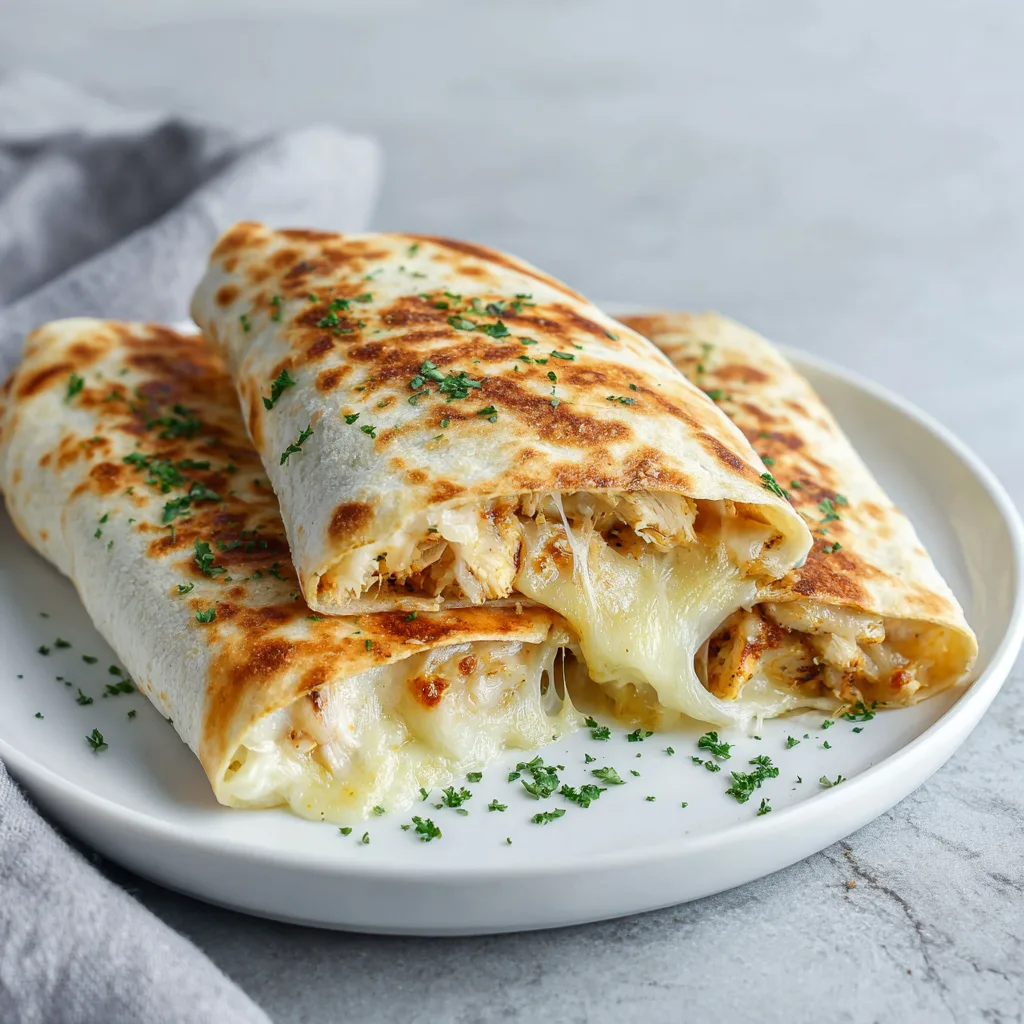 Ooey Gooey Cheesy Garlic Chicken Wraps