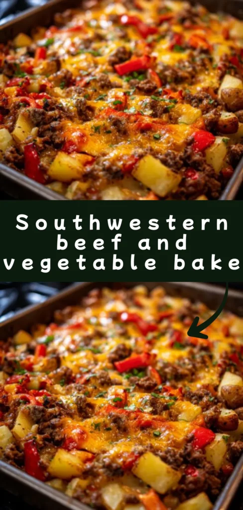 Some dinners just work on every level, and this Southwestern beef and vegetable bake is one of them. Seasoned ground beef, three colors of bell pepper, and tender roasted potatoes all come together in a single baking dish under a layer of melted cheddar, and the whole thing comes out of the oven looking and smelling like a meal worth sitting down for. The cumin and chili powder give the beef a warm, Southwestern depth without pushing the heat into territory that divides the table.