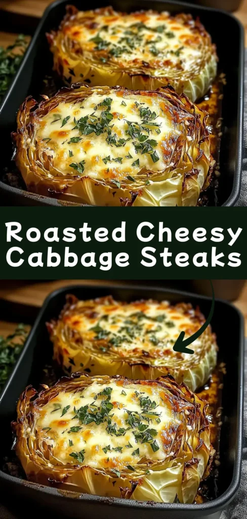 Thick-cut cabbage steaks roasted at high heat until caramelized and tender, finished with a golden mozzarella and Parmesan topping for a satisfying low-carb dinner or vegetarian side.