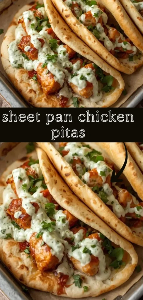 When the weeknight dinner window is narrow and cleanup patience is even narrower, a single sheet pan does a lot of heavy lifting. These sheet pan chicken pitas bring together smoky roasted chicken strips, charred bell peppers, and sweet caramelized onion wedges, all wrapped in warm pita with a cool, herb-forward ranch sauce made from Greek yogurt. The contrast between the hot filling and the cold sauce is what makes this one worth coming back to.