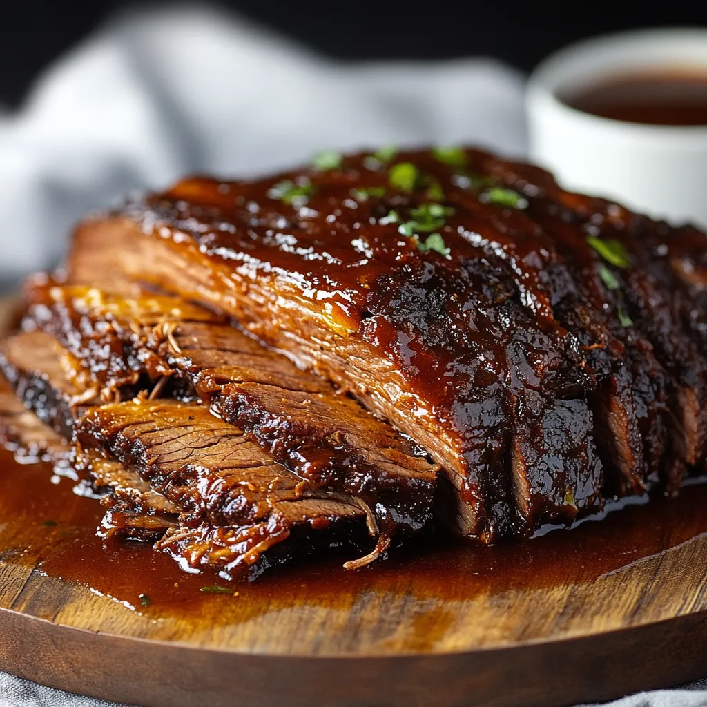 Rest and Slice: When the brisket is fork-tender and pulls apart easily, carefully transfer it to a cutting board. Let it rest for 15 minutes to allow the juices to redistribute. For traditional slices, cut against the grain into 1/4-inch thick pieces. Look at the direction of the muscle fibers and slice perpendicular to them. For pulled beef, use two forks to shred the meat into bite-sized pieces.